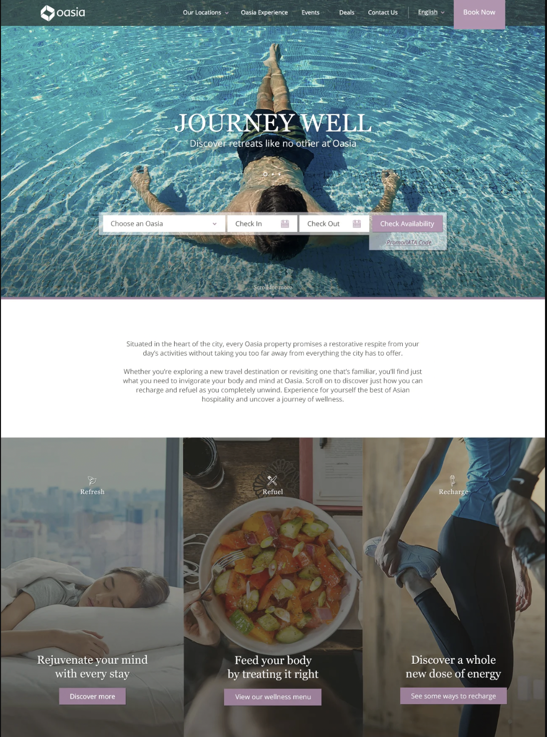 Oasia Hotels offered beautiful, modern properties with best-in-class service… but their website told a different story. Cumbersome to navigate, visually dated, and not built for mobile, it failed to reflect the quality of the experience guests could expect in person. The copy was generic, doing little to convey the warmth and distinctiveness of the brand. With more travellers researching and booking on their phones, a website that couldn't keep up was quietly costing the brand.